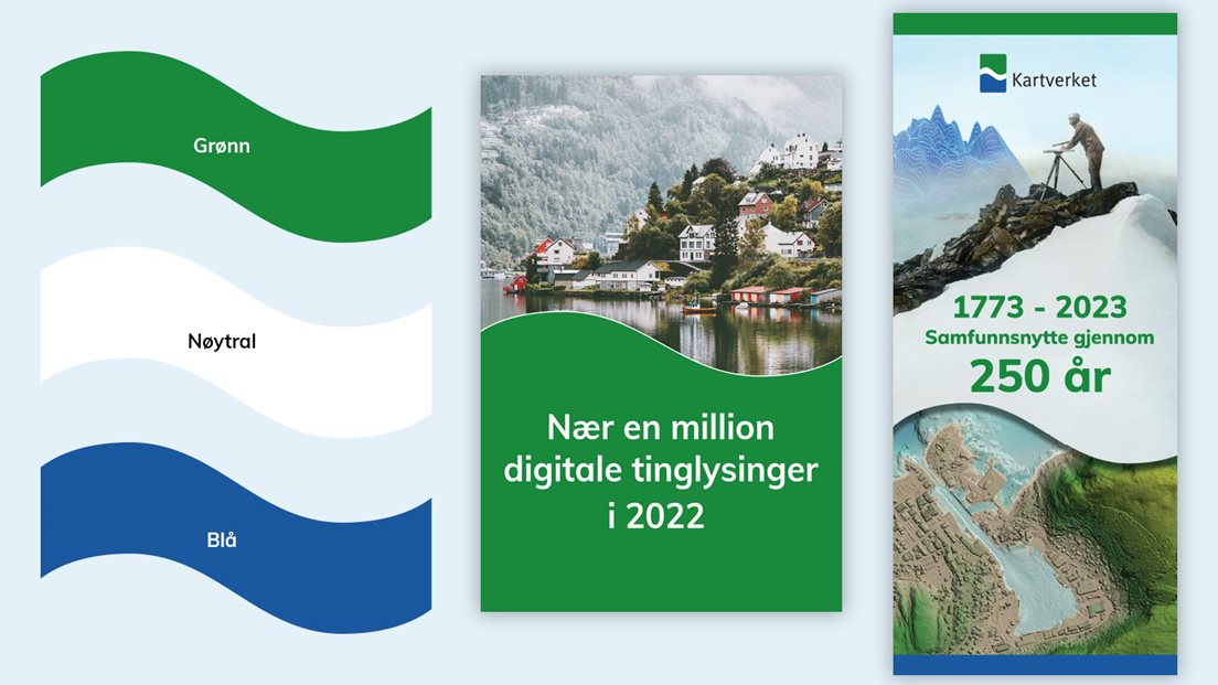 Grafiske designelementer kan lastes ned fra Kartverkets bildebank. Logg inn for å laste ned grafikk