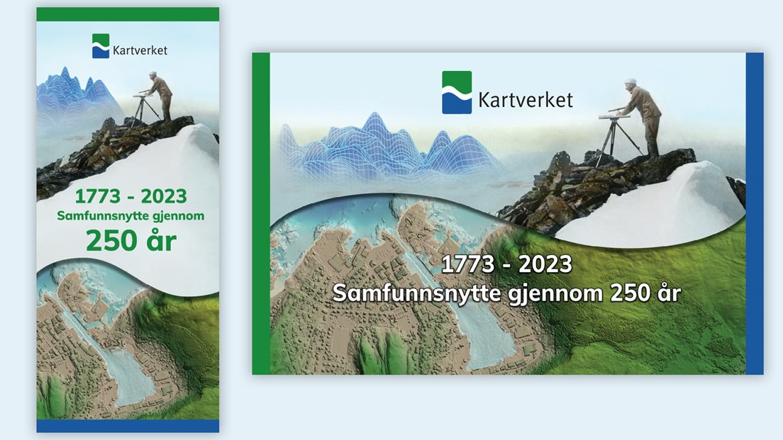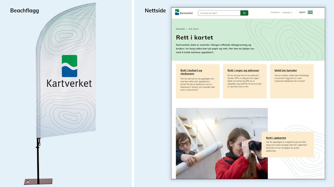 Kartverket benytter designelementer som gjenspeiler logoen, samt kartgrafikk og geografisk data