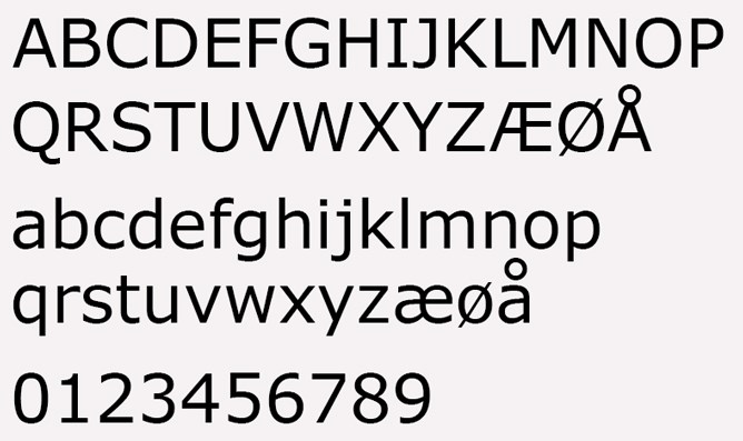 Verdana er en systemfont som kan brukes i slike Office-dokumenter. Verdana brukes hovedsaklig i brødtekst.