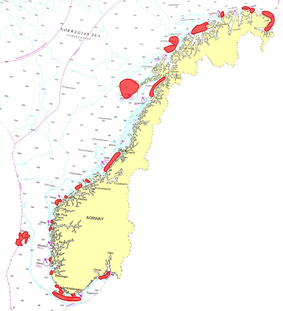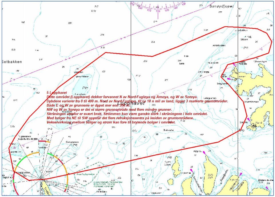 Områdene som beskrives har stor trafikk og mange av dem er midt i skipsleia. For informasjon om vær og bølgehøyder bør Barentswatch sin tjeneste for bølgevarsel brukes.